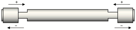 Transducers inside each end cap on the titanium rod produce cyclic positive and negative pressure waves at the frequency of operation (30 kHz or 45 kHz). The positive pressure wave acts as a pushing force on the titanium rod and the negative pressure wave acts as a pulling force (hence "Push-pull"). |